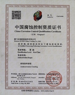 | 雙瑞涂料產(chǎn)業(yè)獲得《中國腐蝕控制資質(zhì)證書》及《中國腐蝕控制設(shè)計資格證書》 |